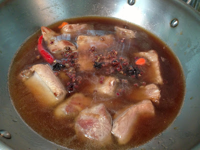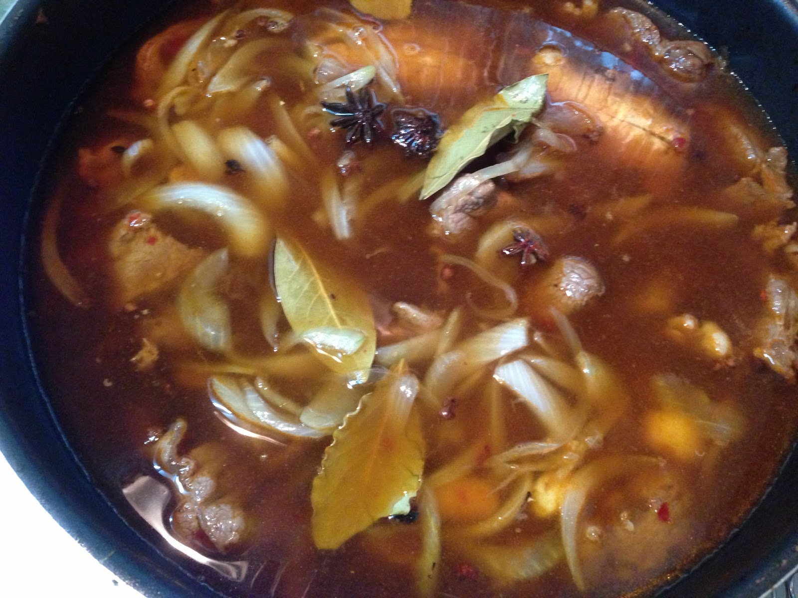 1. 將需要的量放入小鍋(肉與湯汁) 加熱 另燒一鍋水煮麵