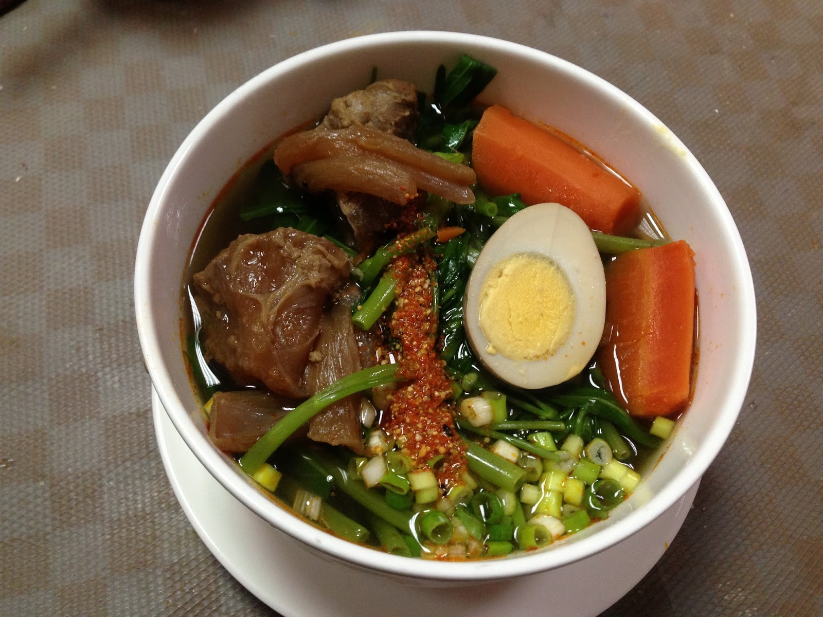 材料: 紅燒牛肉 青菜 蔥花 (滷蛋)