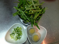 2. 麵煮好 燙青菜 加入牛肉湯 灑點蔥花(半個滷蛋) 完成