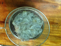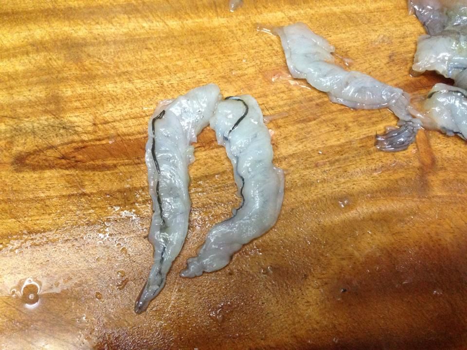 1. 蝦去殼去腸泥一隻蝦分為二 用鹽抓一下 水清洗一下