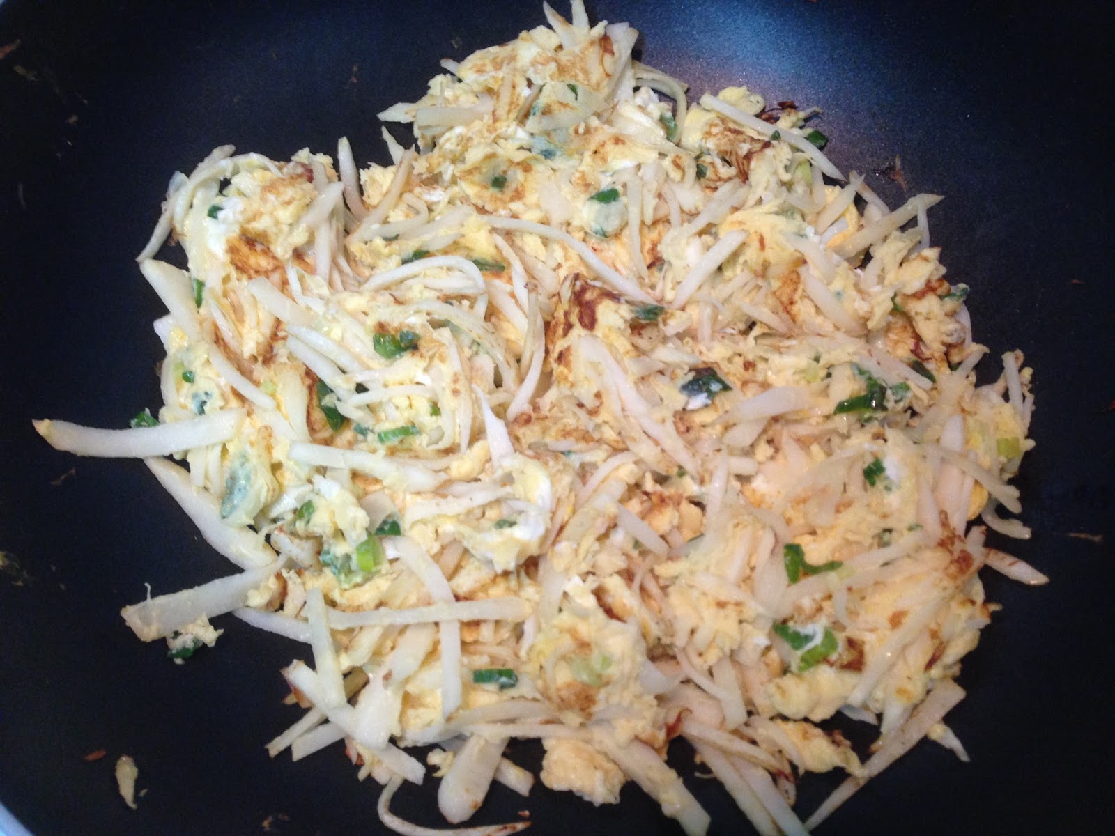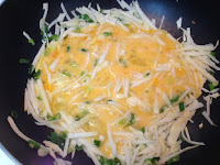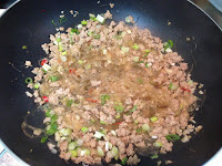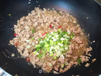 放入已炒熟的蝦仁 蔥花快速翻炒一下關火 淋幾滴香油
