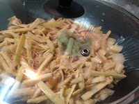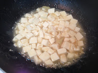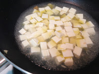 爆香薑片 加水跟豆腐少許鹽 米酒 煮一下 淋下蓮藕粉勾芡