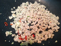 3. 一小匙橄蘭油先將蝦仁炒熟盛起來備用 再一小匙橄蘭油
