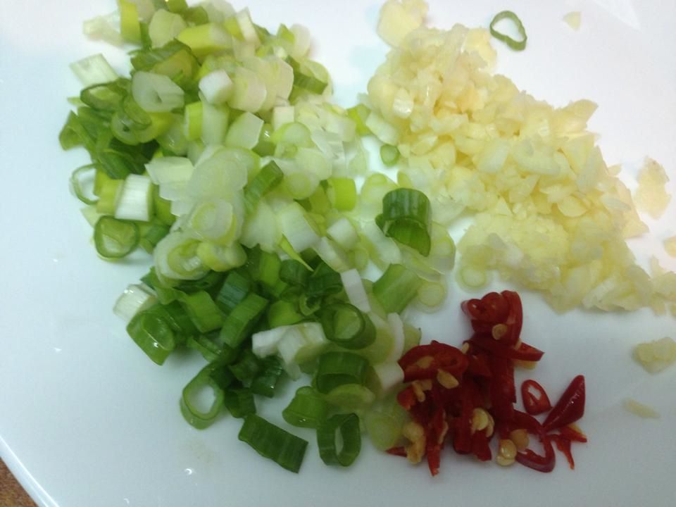 2. 蔥切蔥花 薑切片 豆腐切小塊
