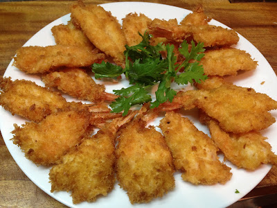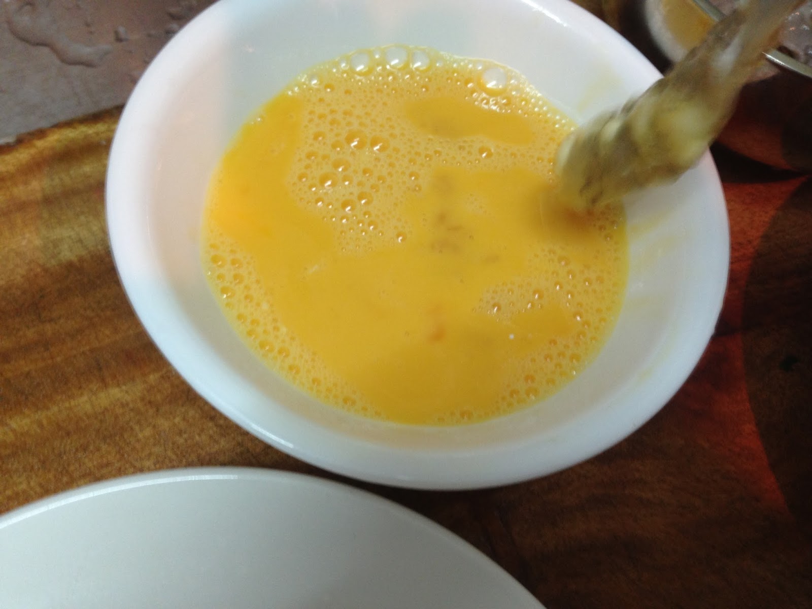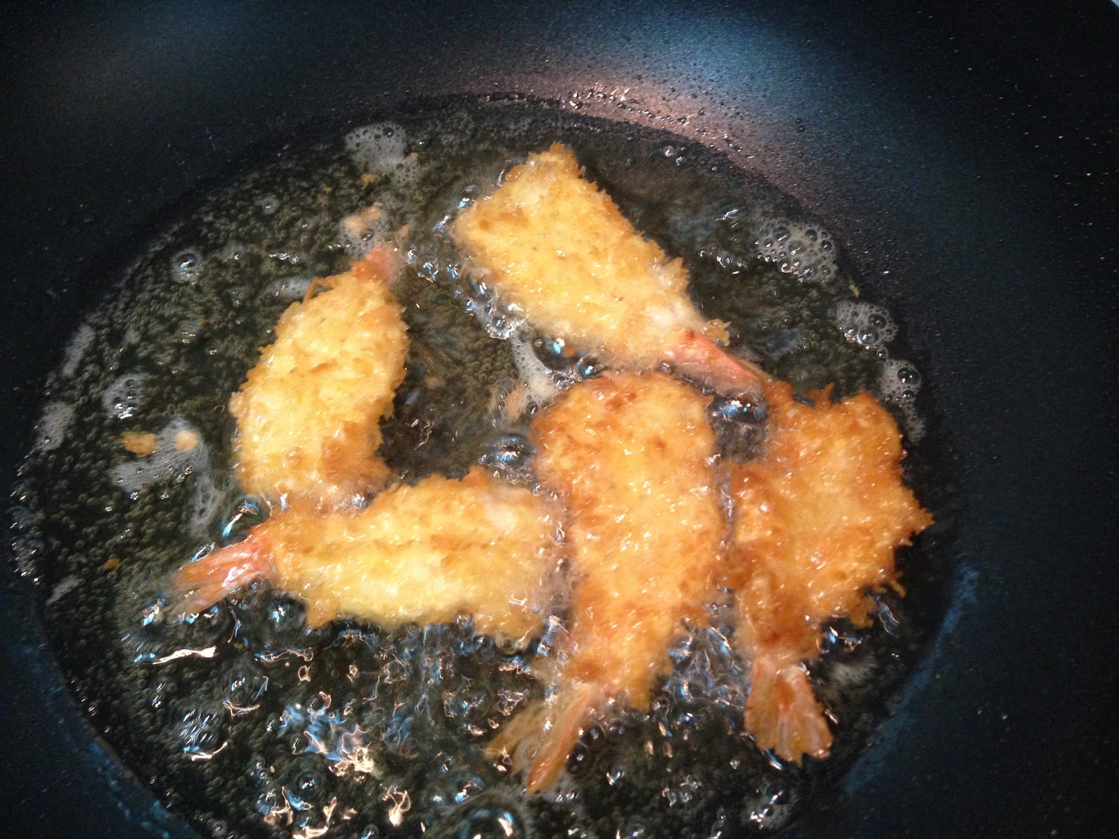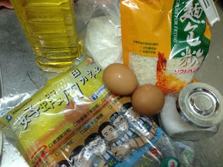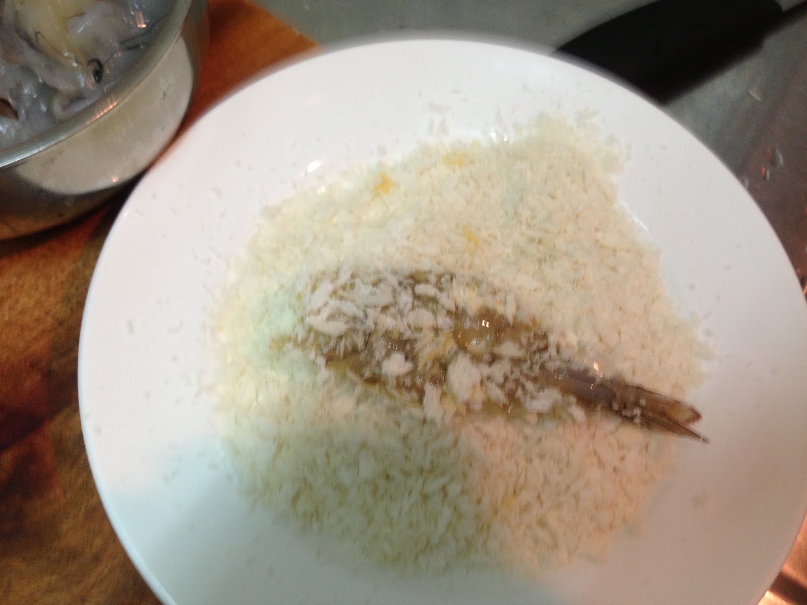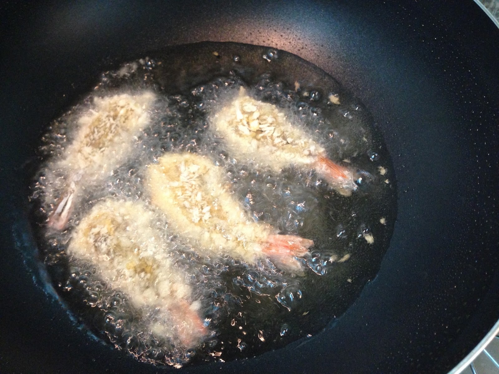 材料: 蝦 麵粉 麵包粉 鹽 雞蛋 油