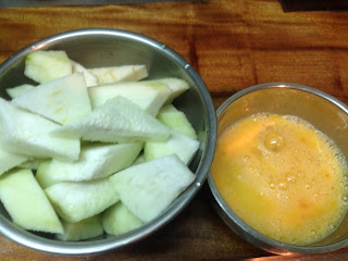 1. 絲瓜削皮切塊 打兩個雞蛋