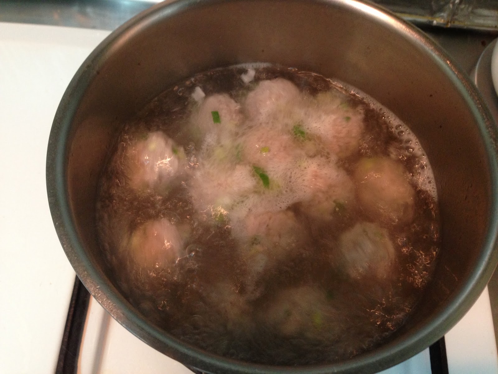 3. 丸子全放入湯裡後轉大火煮到丸子浮起來再煮2分鐘