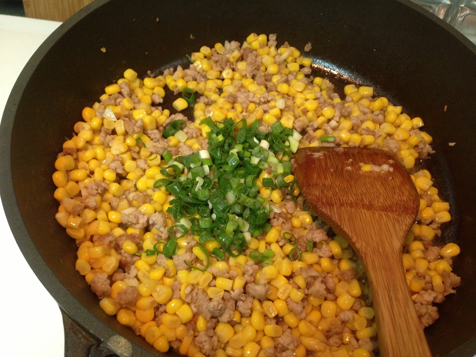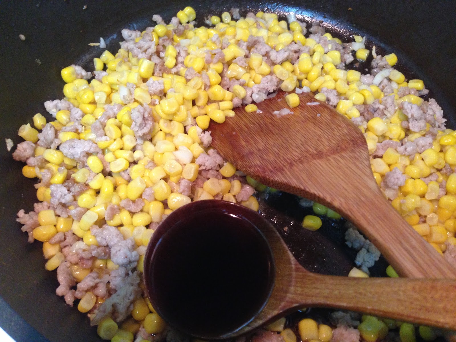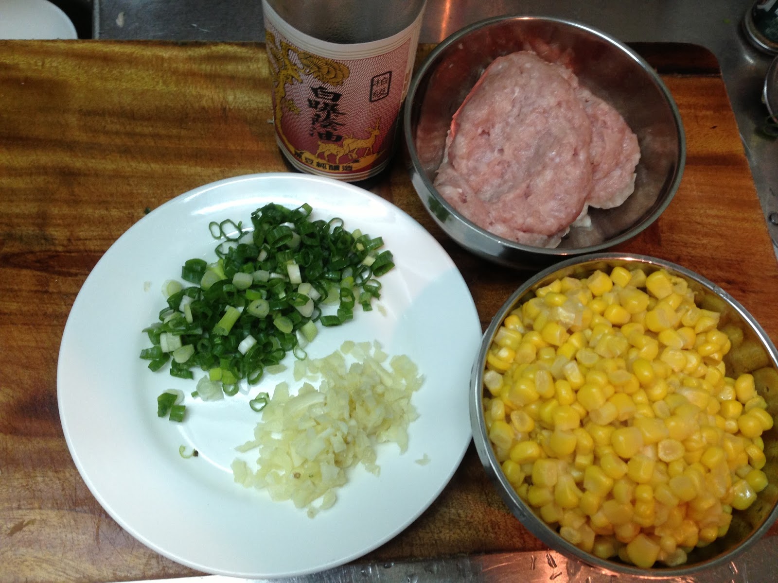 1.材料: 玉米粒(非基改玉米粒) 絞肉 蒜末 蔥花 醬油