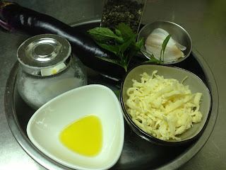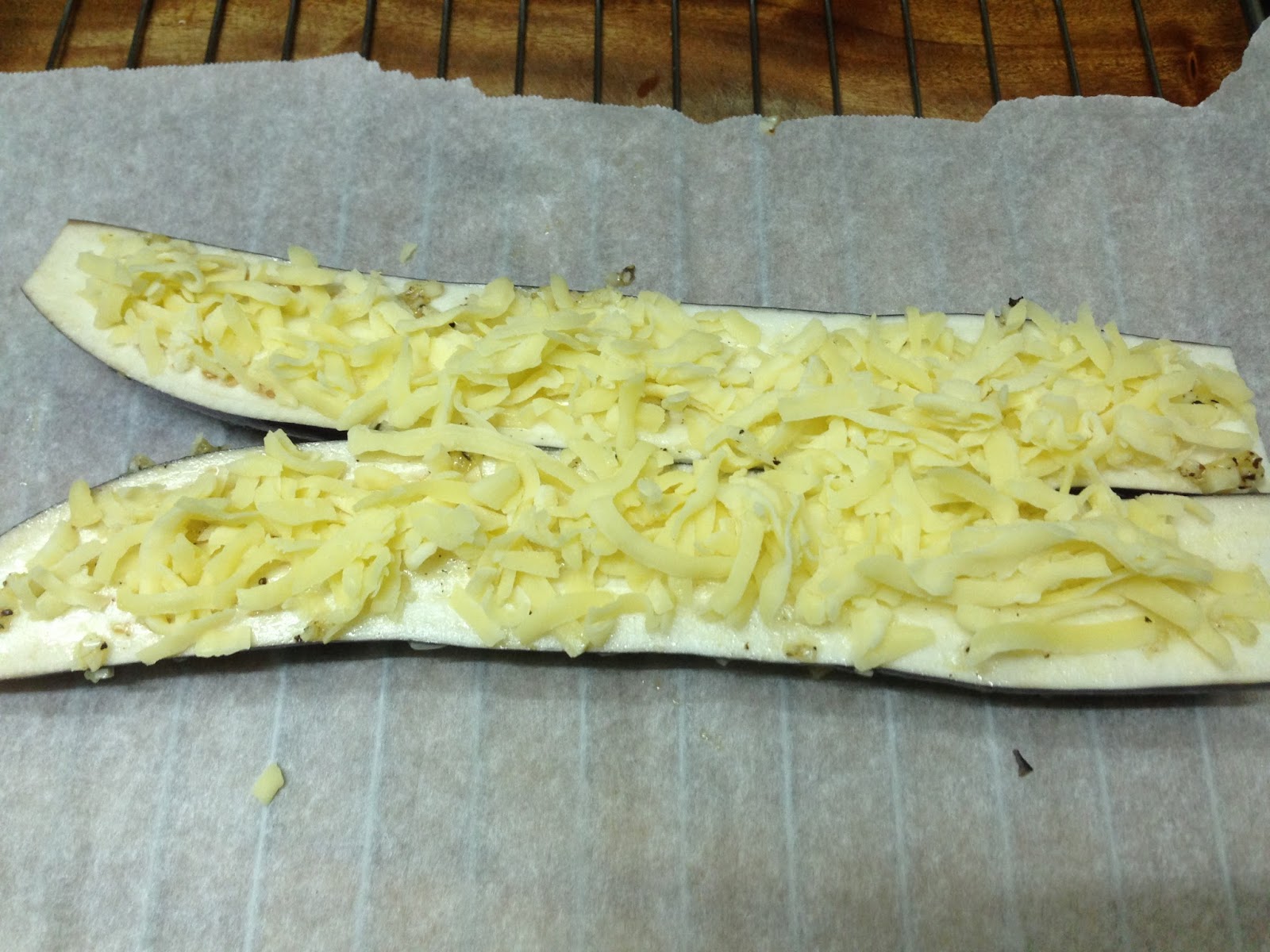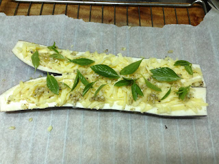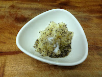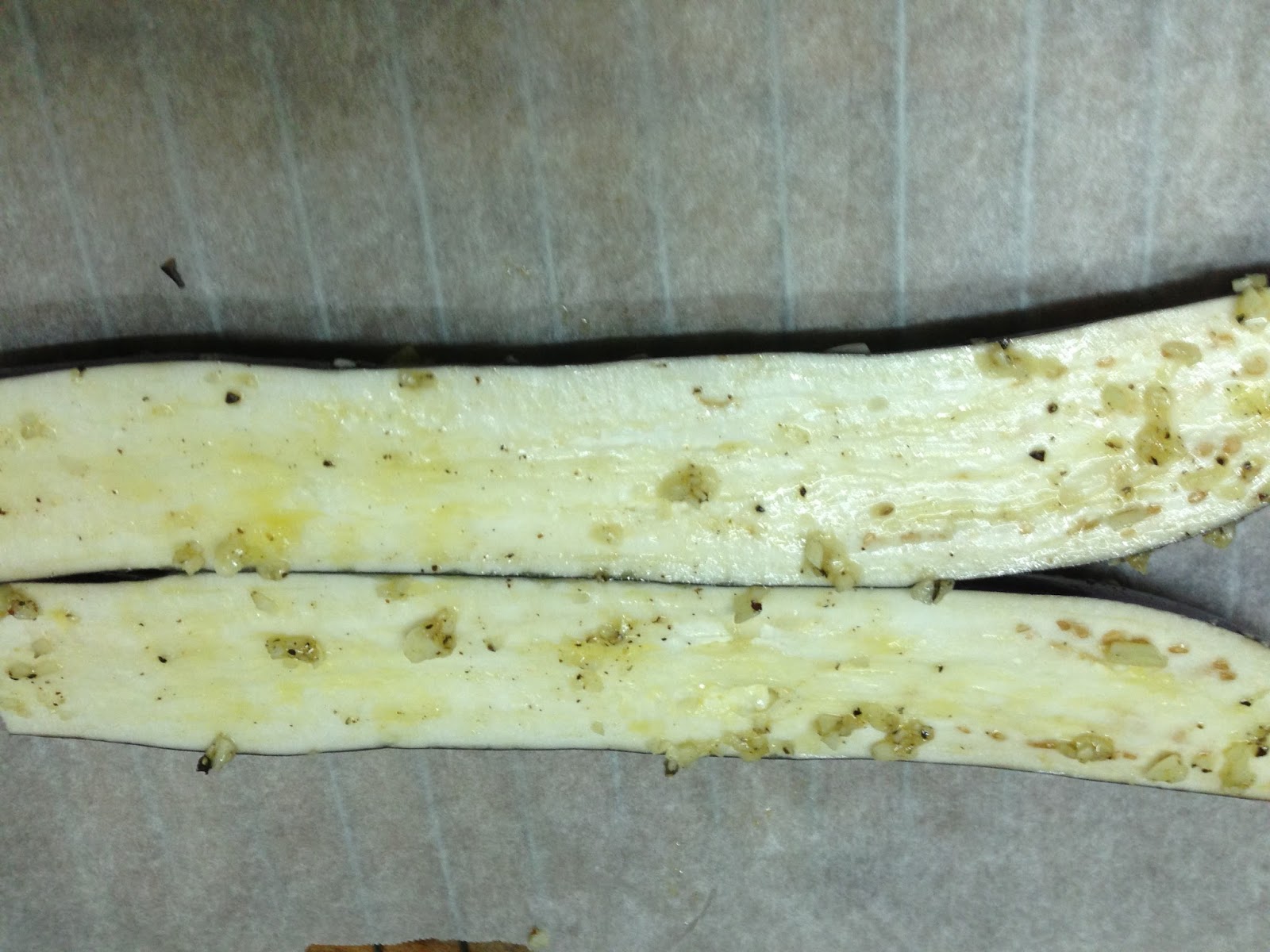2. 蒜頭切末 鹽少許 橄藍油 黑胡椒攪拌均 涂抹整個茄子