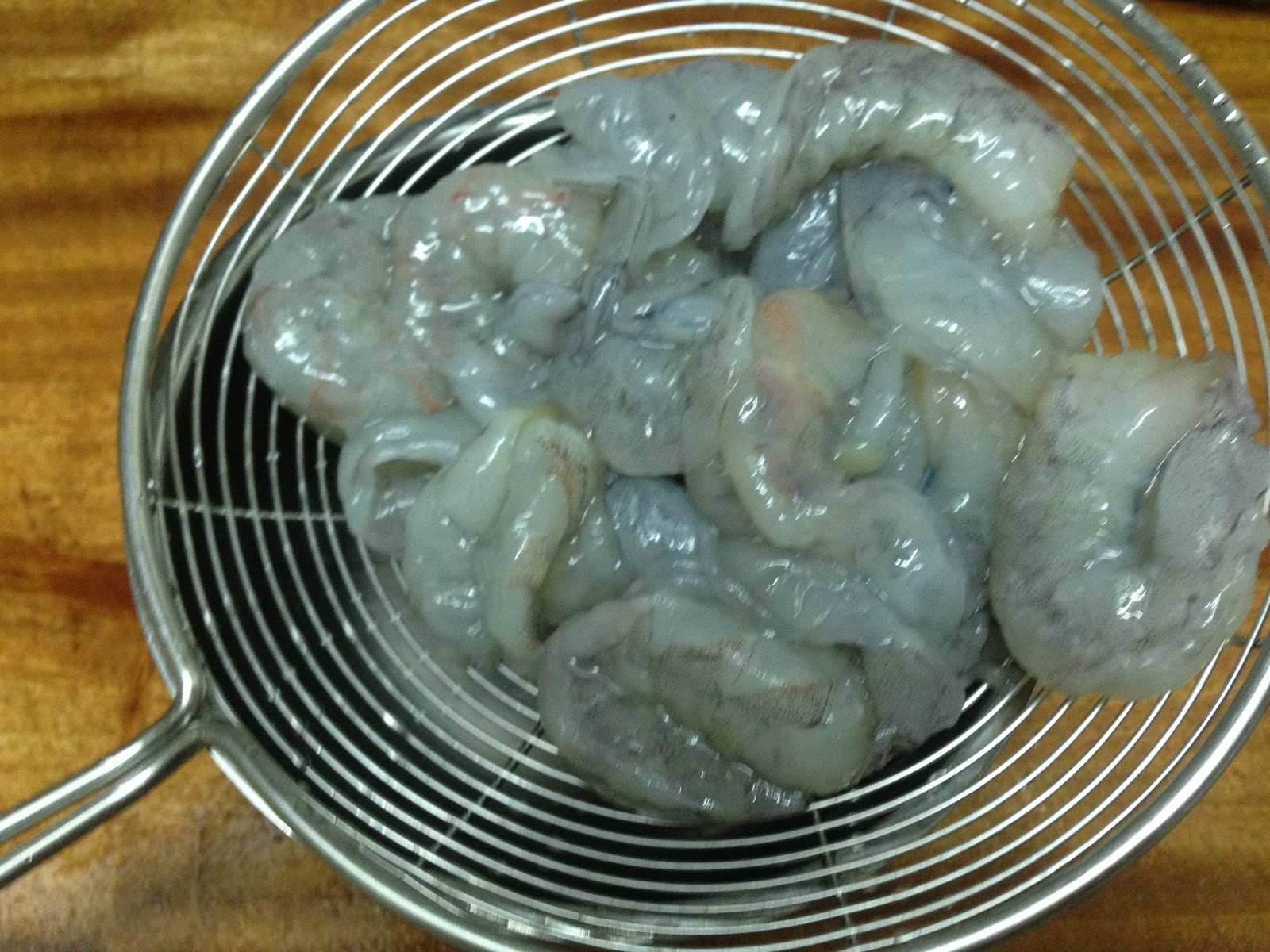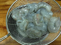 ㄧ下 蓮藕粉勾欠後 已煮熟的蝦仁加進拌ㄧ下 蛋汁淋下
