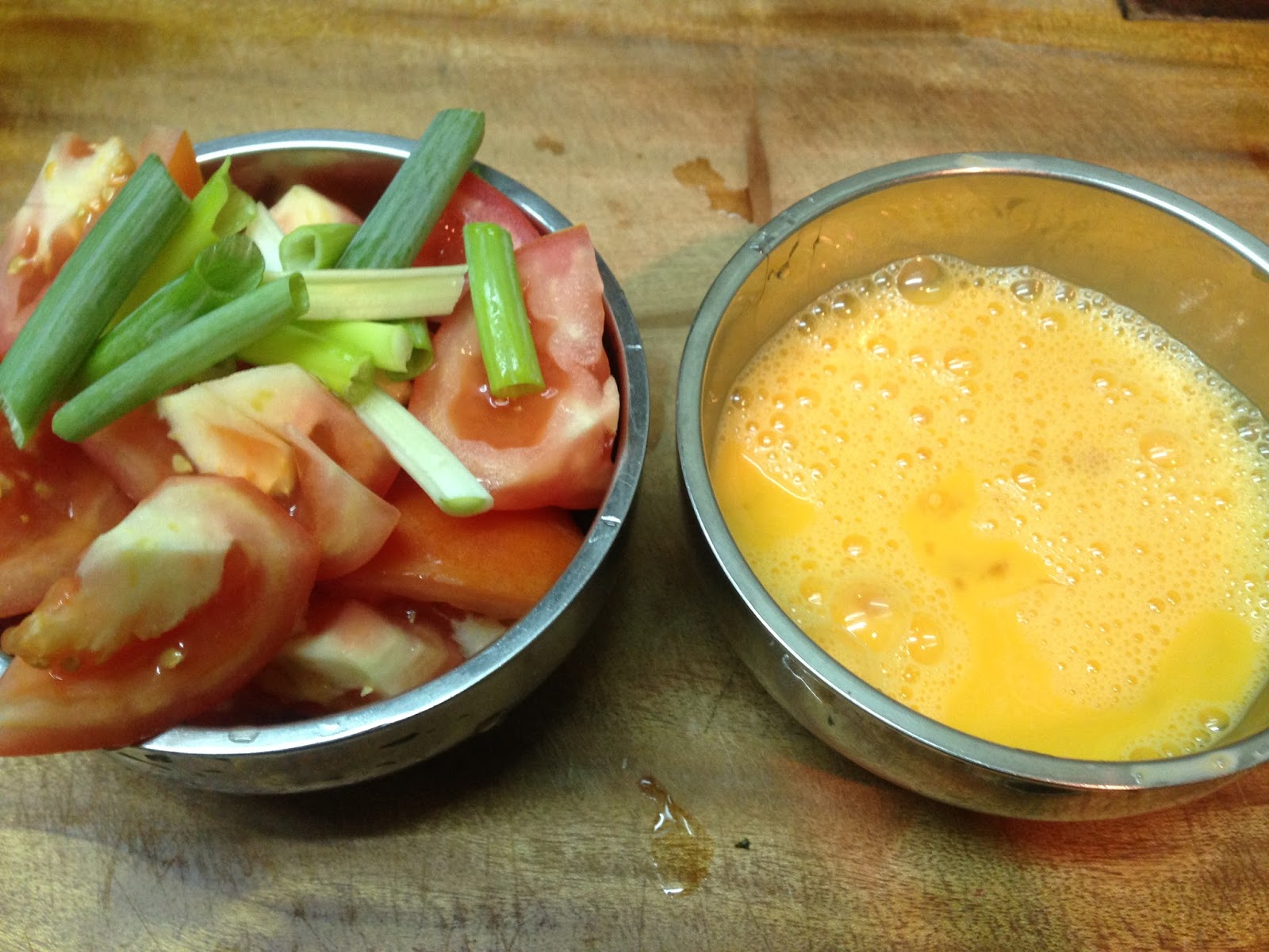蕃茄切塊 蔥段 蛋打好