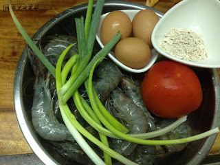 材料: 蕃茄 蝦 蛋 蔥 蓮藕粉
