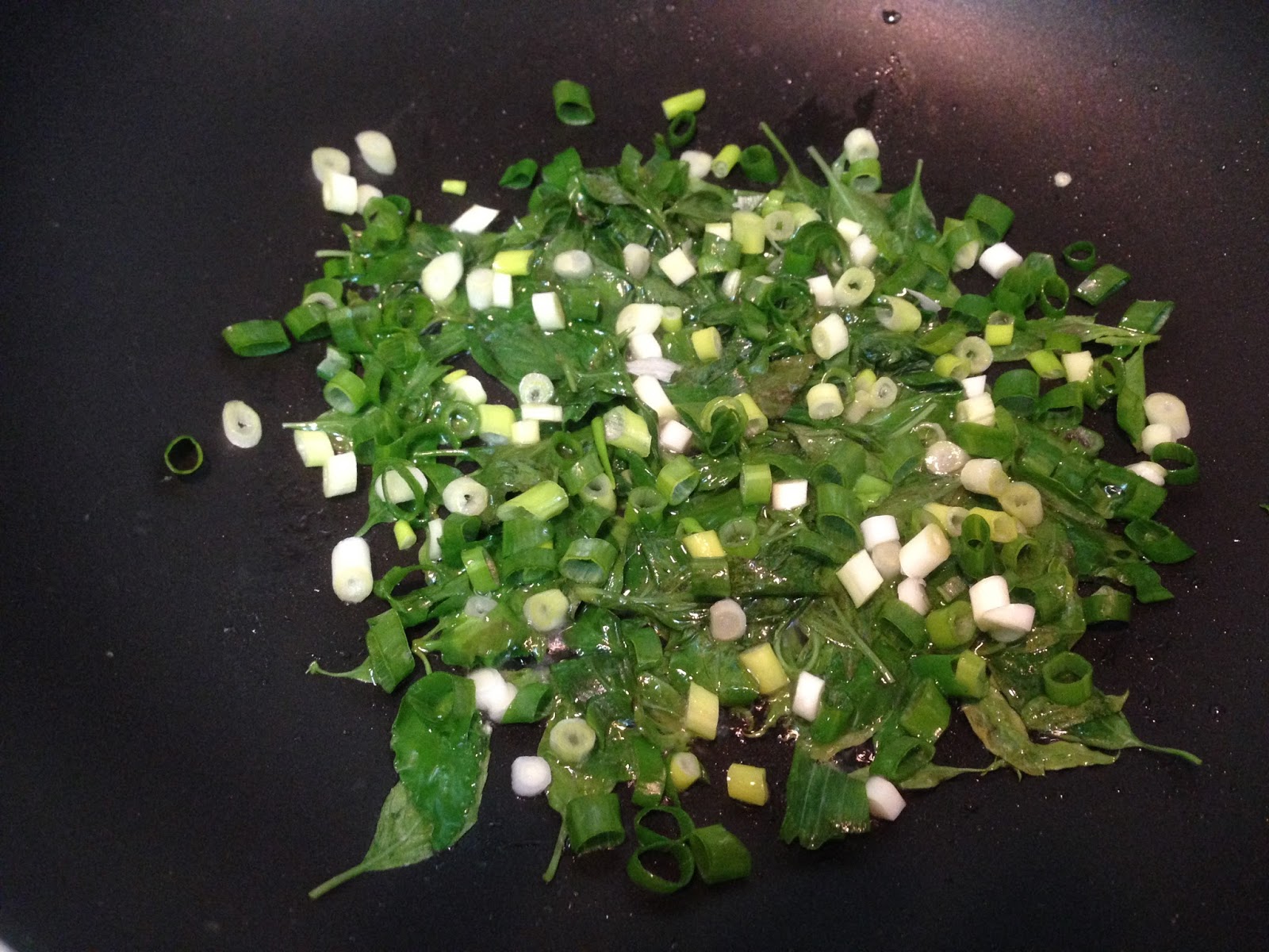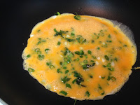 蔥花均勻放入 蛋汁淋下 兩面煎熟即可
