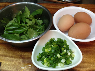 材料 : 九層塔一把 蔥花 雞蛋3只