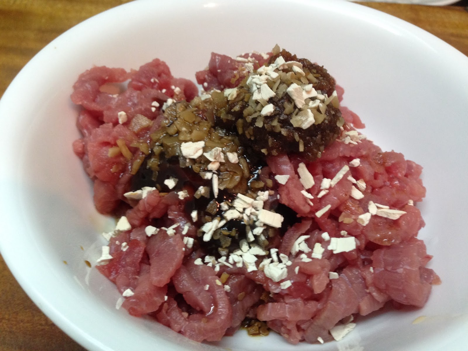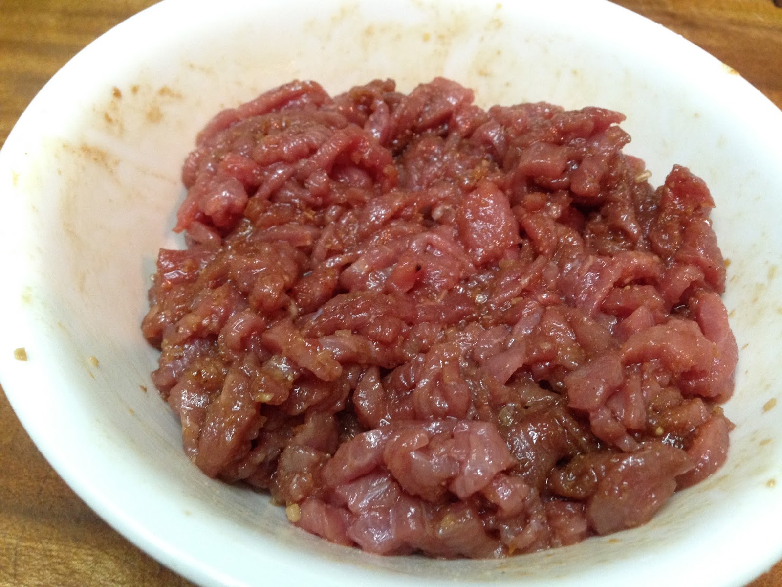 1. 牛肉加一匙蠔油 一匙醬油 一匙米酒 一匙沙茶醬