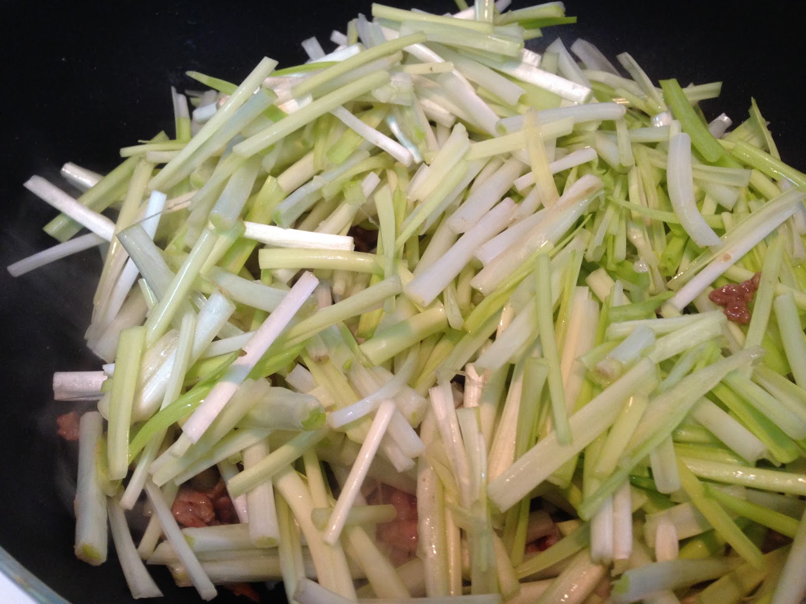 放入韭菜黃快束翻炒一下(不宜炒過久)