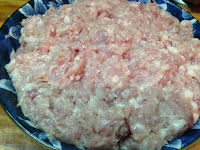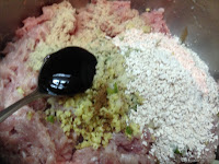 材料 : 絞肉 薑末 蔥末 蓮藕粉 鹽 白胡椒粉 五香粉 米酒 蠔油