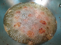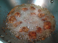 2 . 30分鐘後 油熱後將肉用手擠一丸一丸下油鍋炸