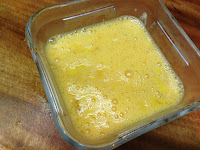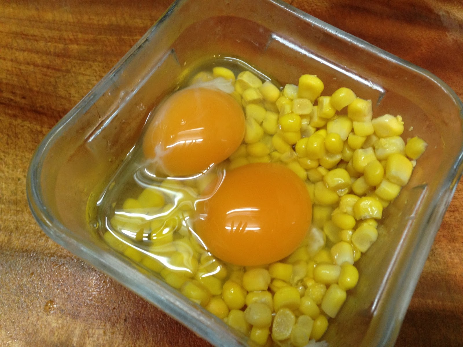 1 . 將蛋打進玉米粒裡 打花