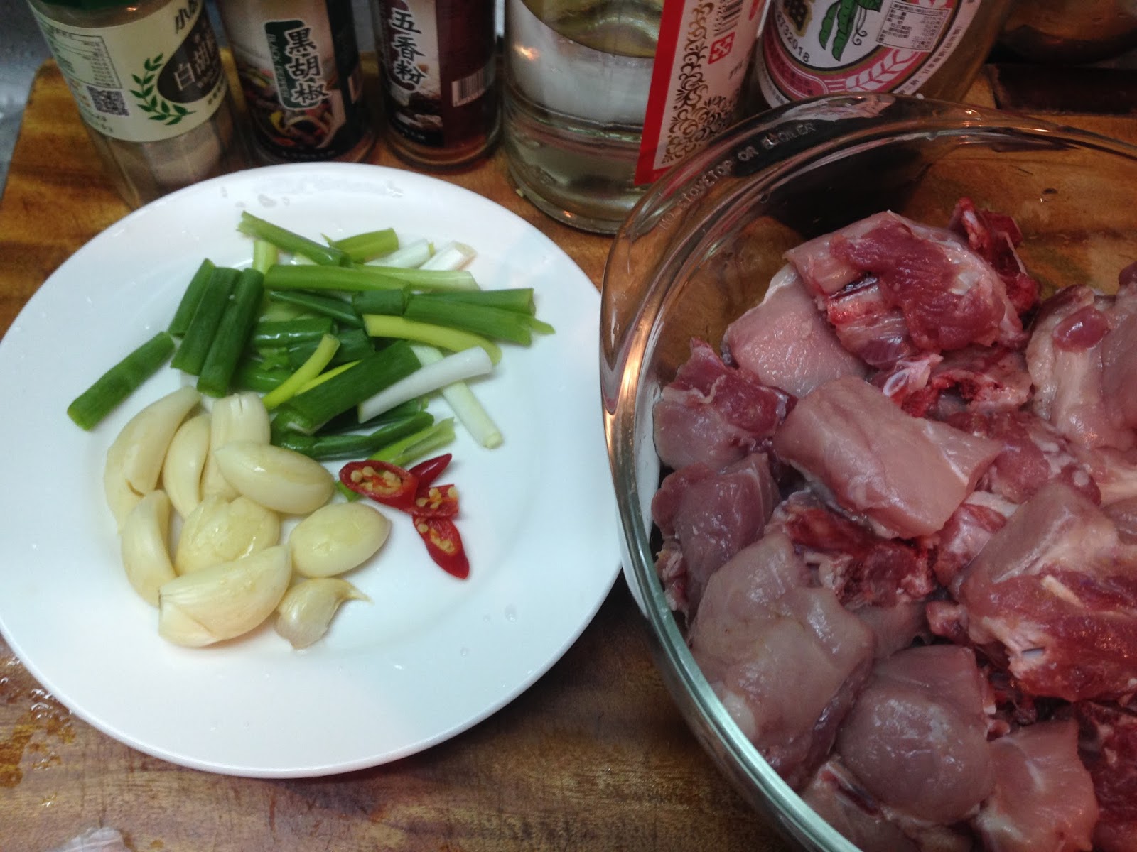 材料 : 小排 蔥段 蒜頭 辣椒 米酒 醬油 白胡椒粉 黑胡椒粉