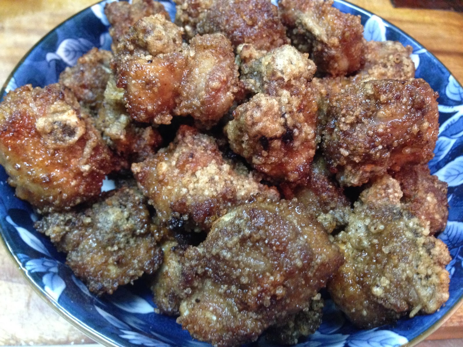灑些地瓜粉 將排骨均勻沾上 放入油鍋炸至金黃