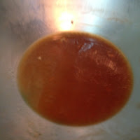 3 . 15分鐘後將豆包放入盤裡 剩於湯汁用蓮藕粉對水勾芡