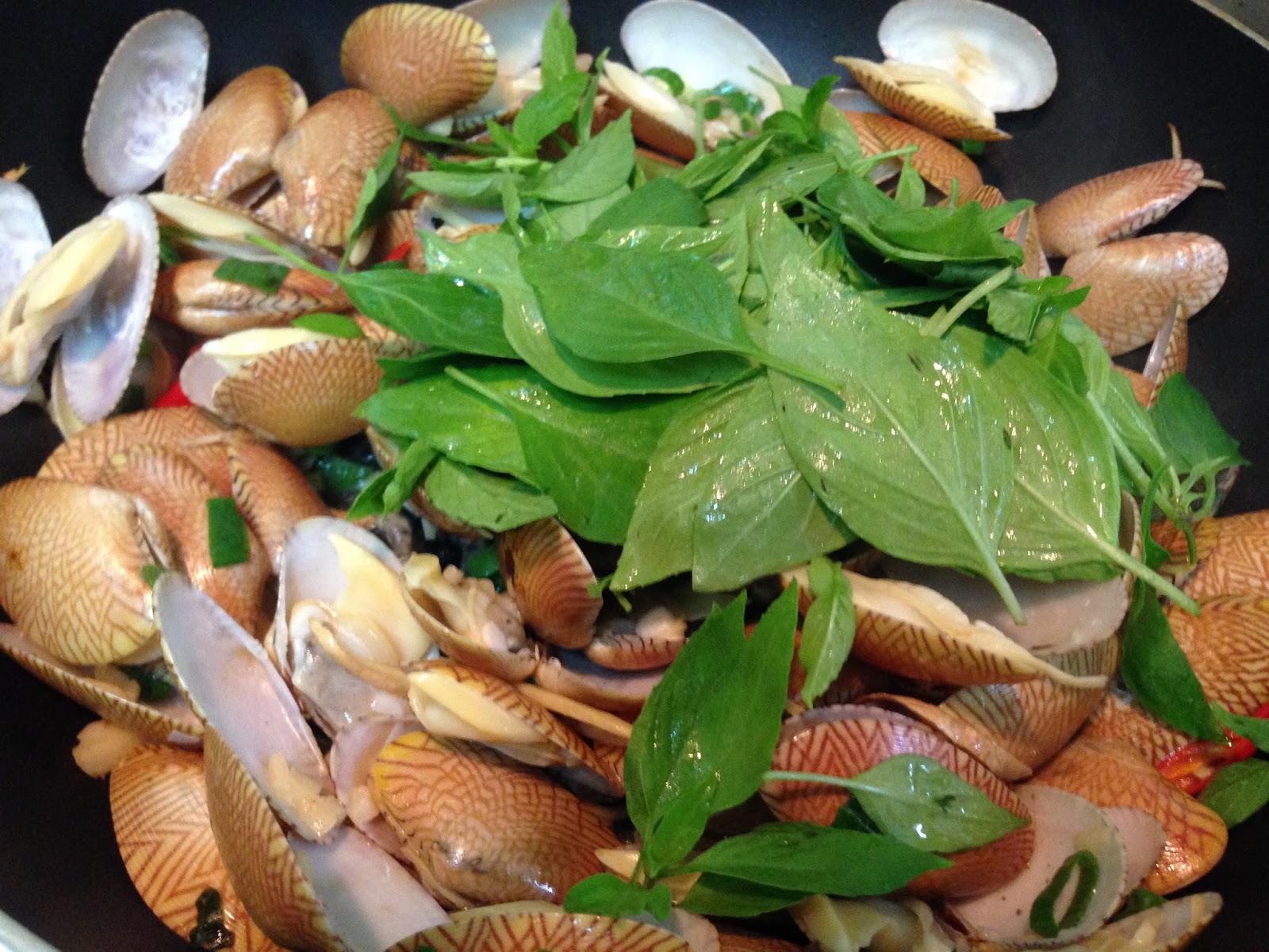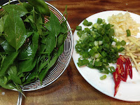 材料:蔥花 薑絲 蒜末 辣椒絲 九層塔一把
