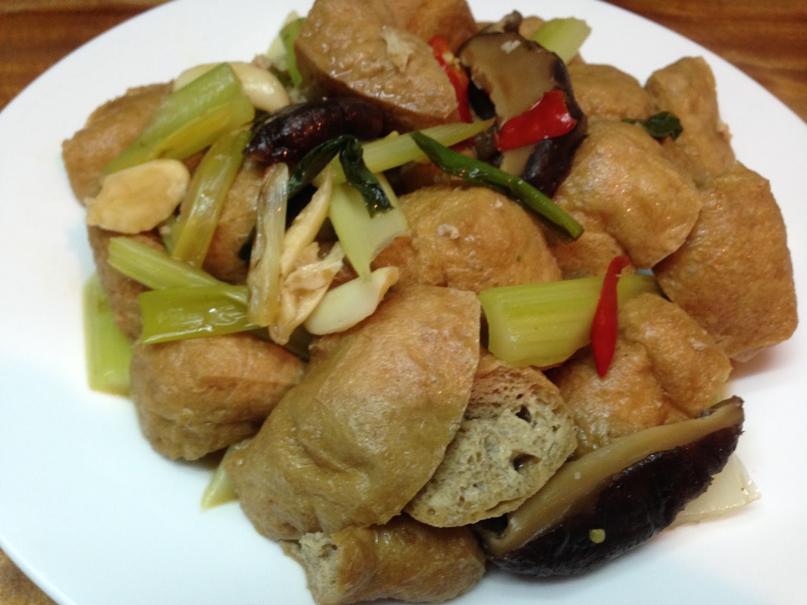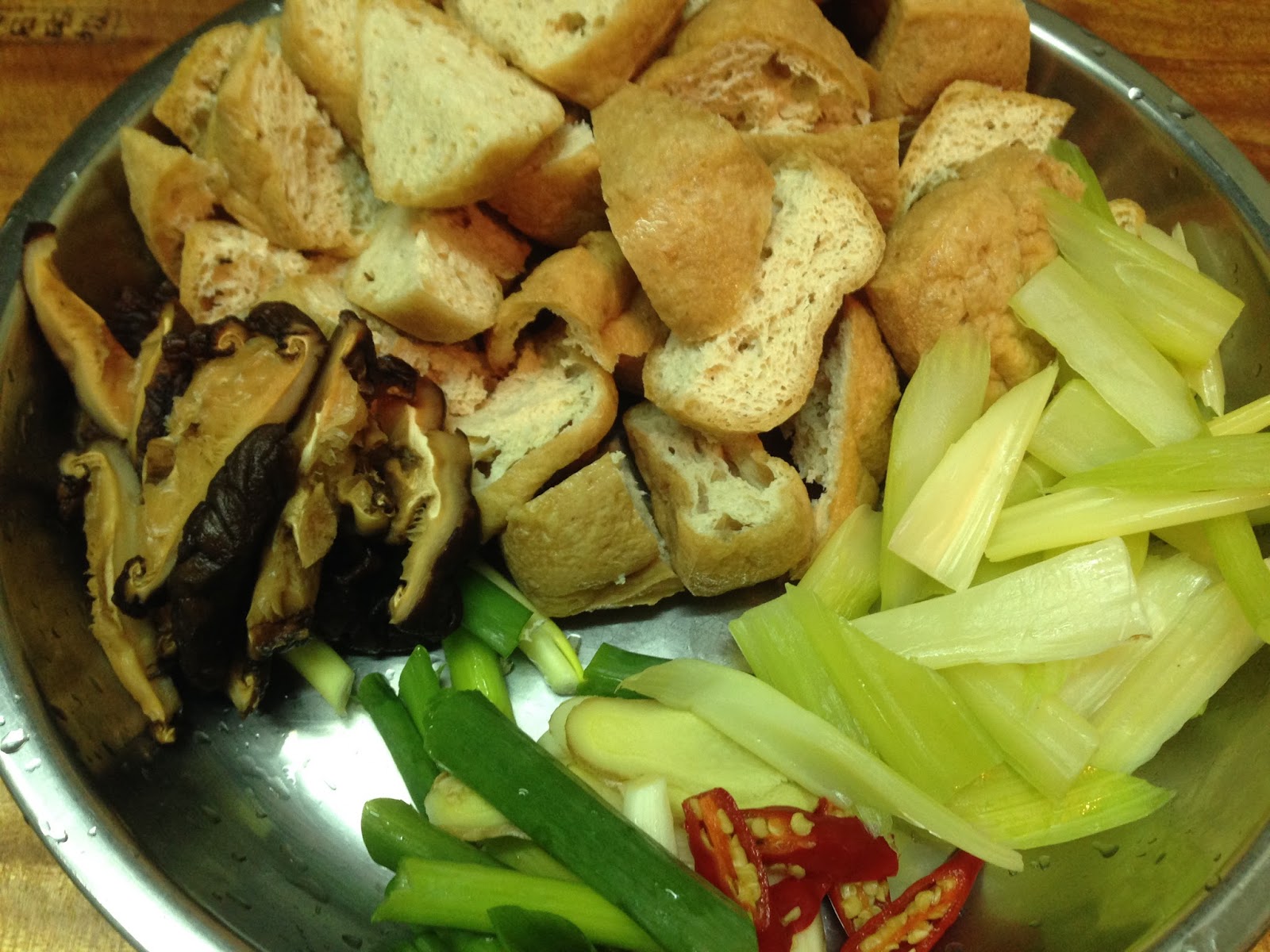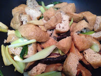 材料 : 豆包一切四 乾香菇泡軟切大絲 西芹 蔥 蒜頭 辣椒