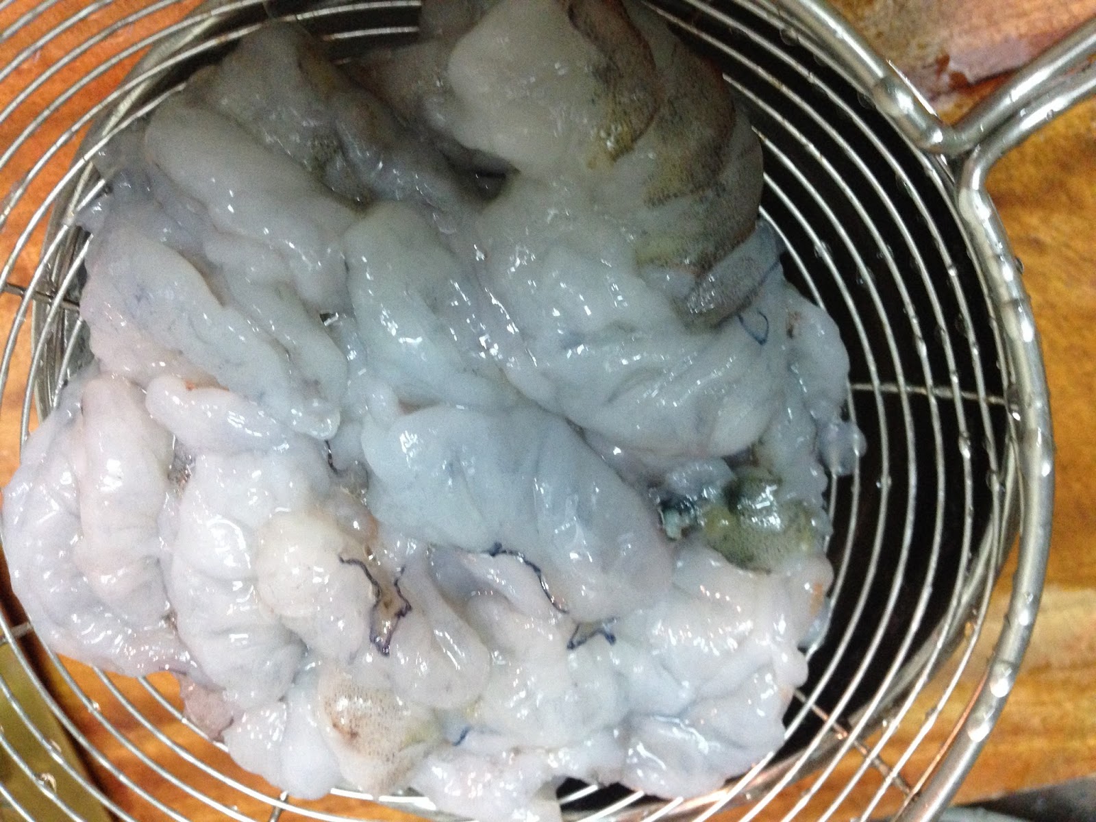2. 勾完芡後 將蝦仁 新鮮干貝 蟹肉加入煮熟最後放西芹粒