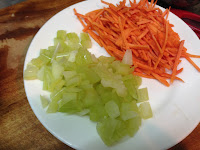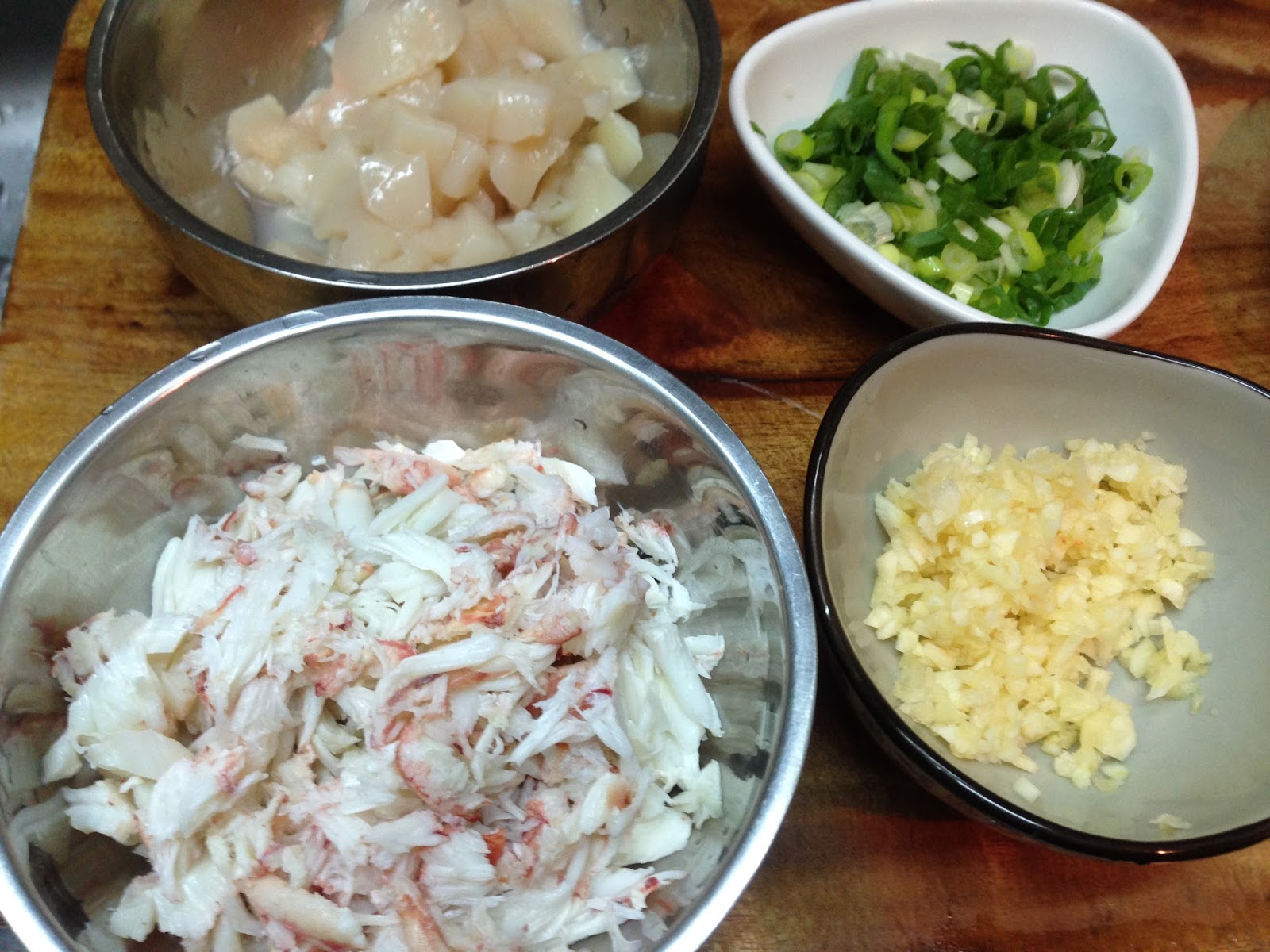 切絲 西芹切粒 新鮮干貝切粒 蟹肉 蔥花 蒜末 油蔥酥