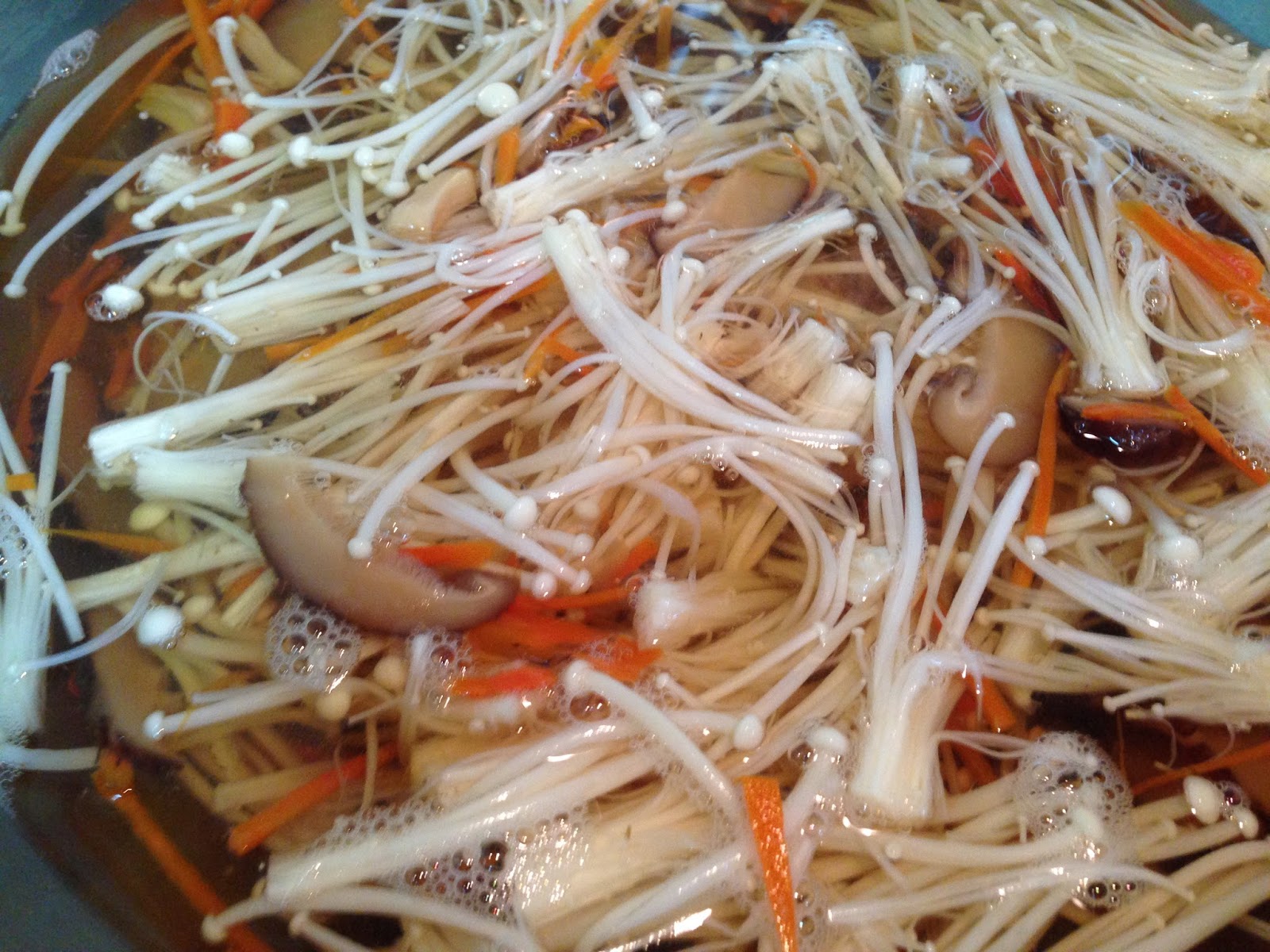 放入 金珍菇 加少許鹽 蓮藕粉調勻勾芡