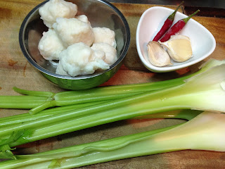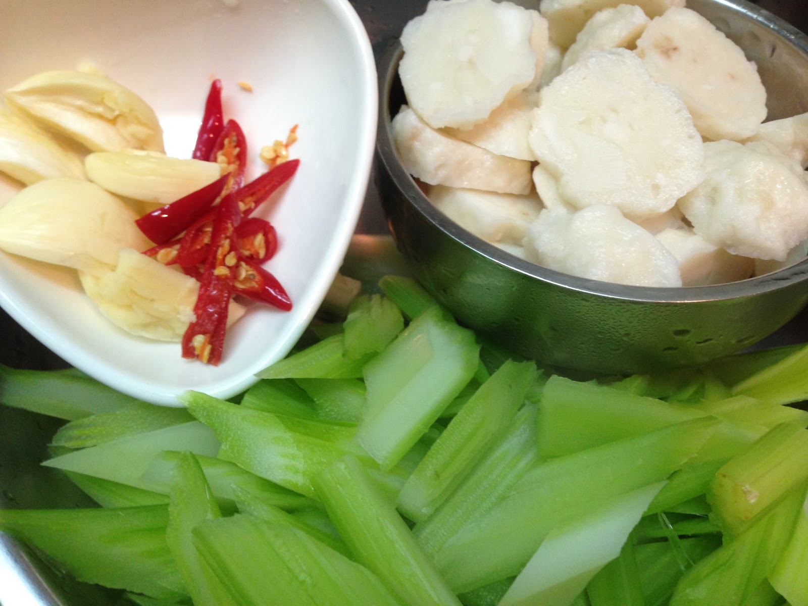 材料 : 西芹 花枝丸 蒜頭 辣椒